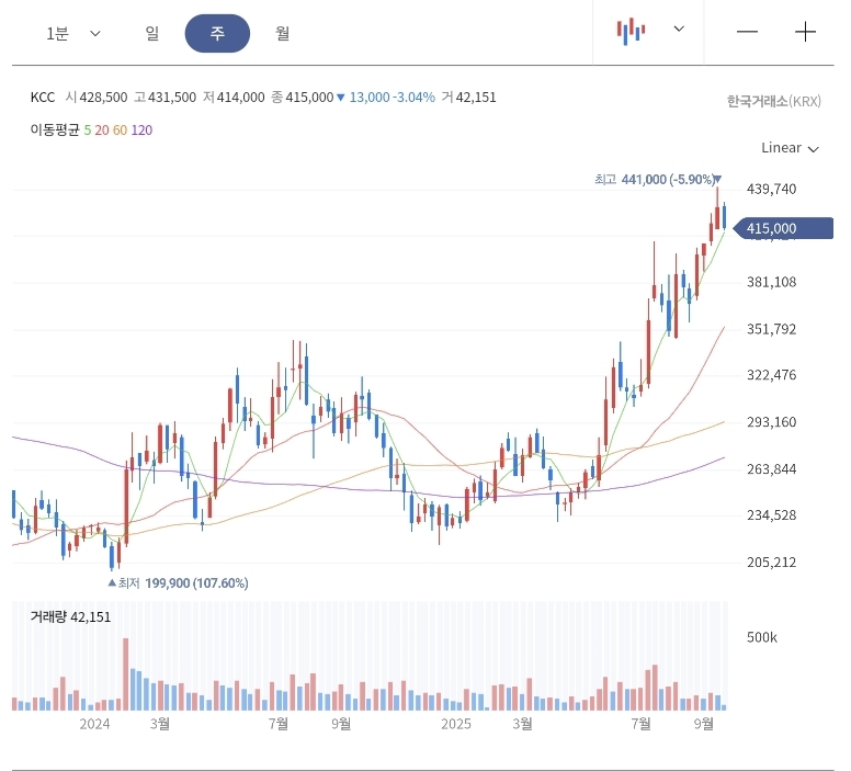 KCC는 업계 평균 대비 현저히 낮은 PER과 PBR 덕분에 높은 안전마진을 제공합니다. 최근 배당수익률 2.34% 내외, 자사주 보유율 17%로 주주 친화적 경영도 강화되었습니다. 재무 안전성, 현금 보유력, 배당정책은 저평가 구간 유지에 중요한 배경입니다.