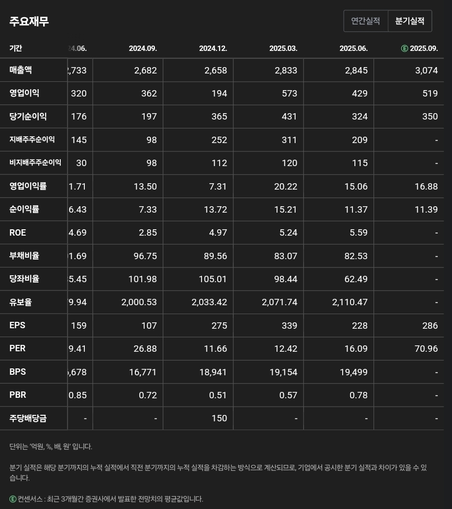 PER: 약 25배 — 업종 평균이 192배인데, 너무 저격 아닙니까?