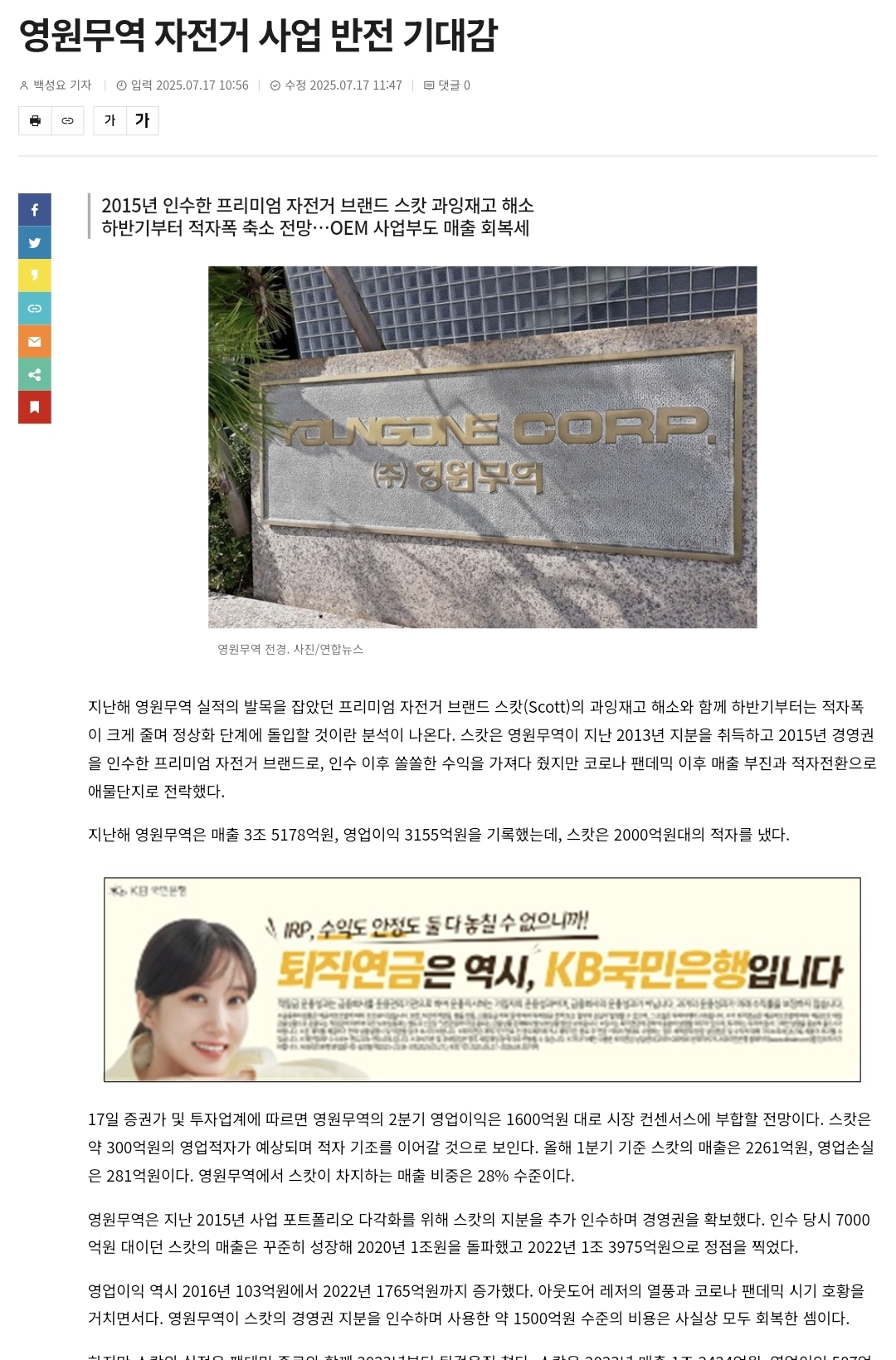 다운사이드: 글로벌 수요 둔화·임금/원가↑·SCOTT 회복 지연 → 이익 -100.45배 구간이면 -20~-30% 리스크. (모두 2024 실적/자본과 현재 시총을 기준으로 보수적 역산)