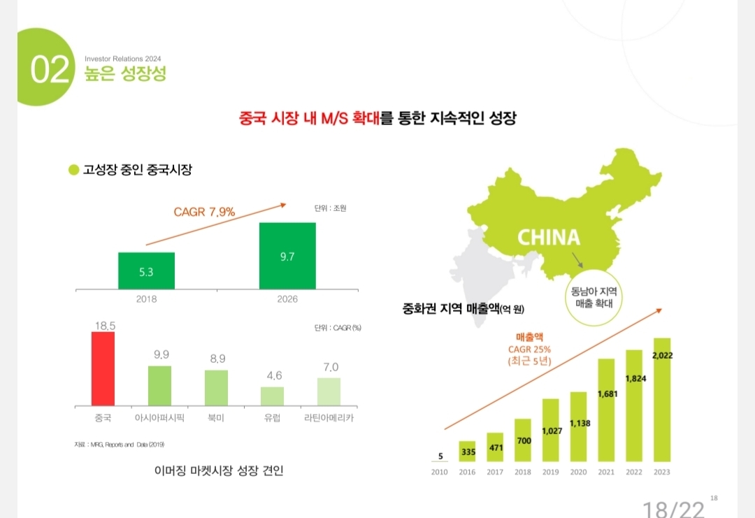 경쟁사와 비교해 매출 성장률과 마진이 매우 높으나, 시장 리스크와 중국시장 성장 둔화 등이 주가를 눌러 안전마진 존재.